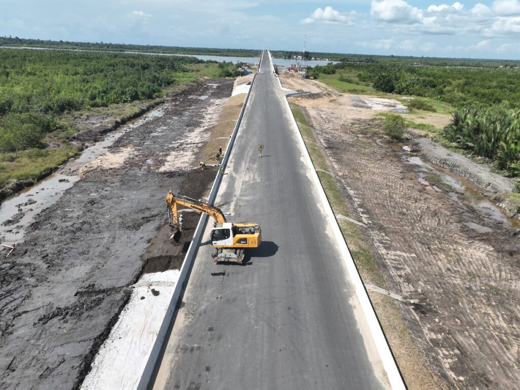 However, he reiterated the determination to deliver the project on schedule saying, 5.2 km of concrete pavement within Bonny Town is completed, stone pitching is ongoing, while an additional 5km approaching asphalt road is completed to 80% with asphalt binder, awaiting only wearing course and slope protection for completion.