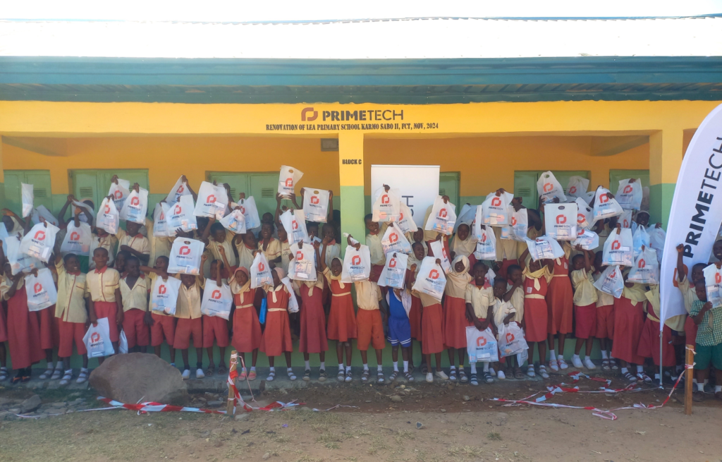 Primetech Design and Engineering Nigeria Limited, a subsidiary of Julius Berger Nigeria Plc recently increased its Corporate Social Responsibility (CSR) efforts for the year by donating books, study materials, mosquito nets and renovated classrooms to the LEA Primary School, Karmo, Sabo 11, Angauwa Hausawa, FCT Abuja.